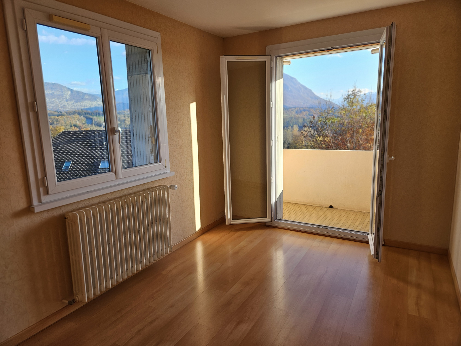 Appartement comprenant une cuisine séparée, grand séjour, chambre avec balcon et vue sur le Parmelan, salle de bain et wc séparé. Stationnement libre, au calme et proche des commerces et commodités.