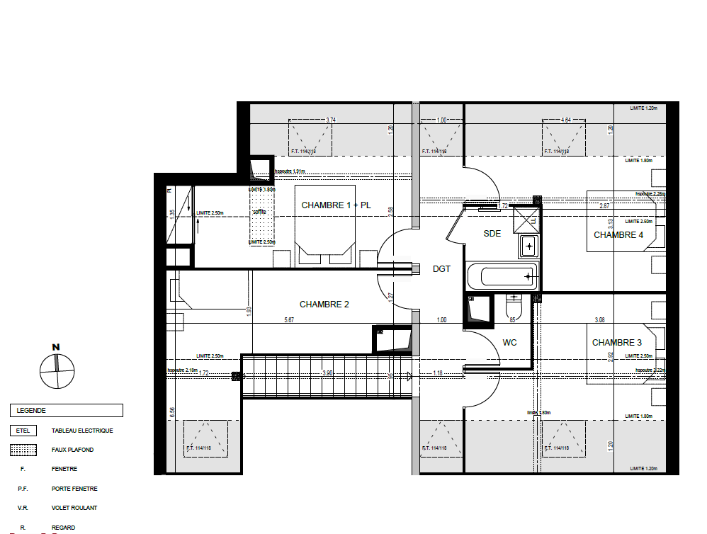 - Quatre chambres spacieuses (entre 11,60 et 13,79 m²)