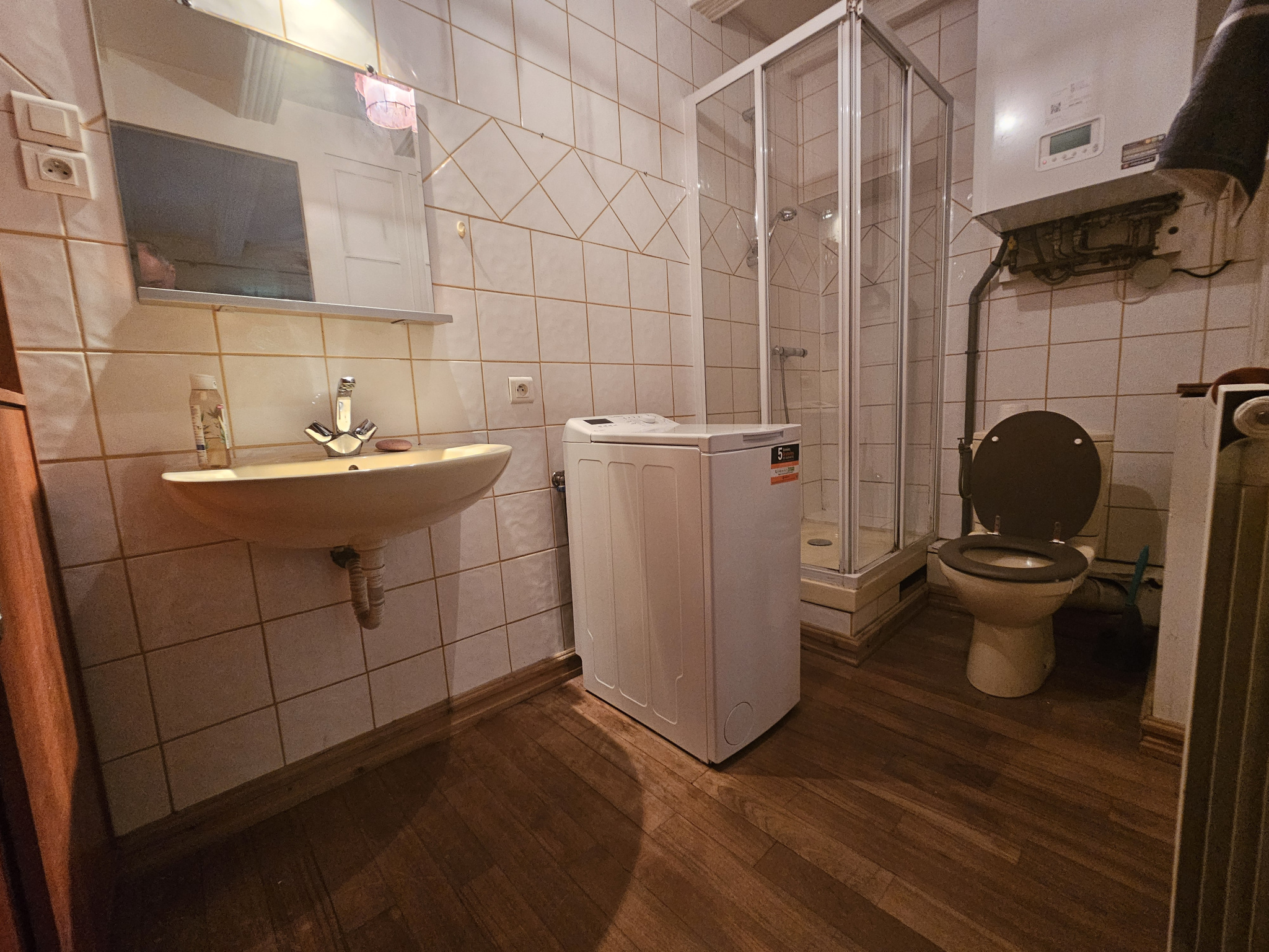 Ce bien à rafraîchir est composé d'une cuisine ouverte sur le séjour et d'un coin repas, une chambre et une salle d'eau avec WC.